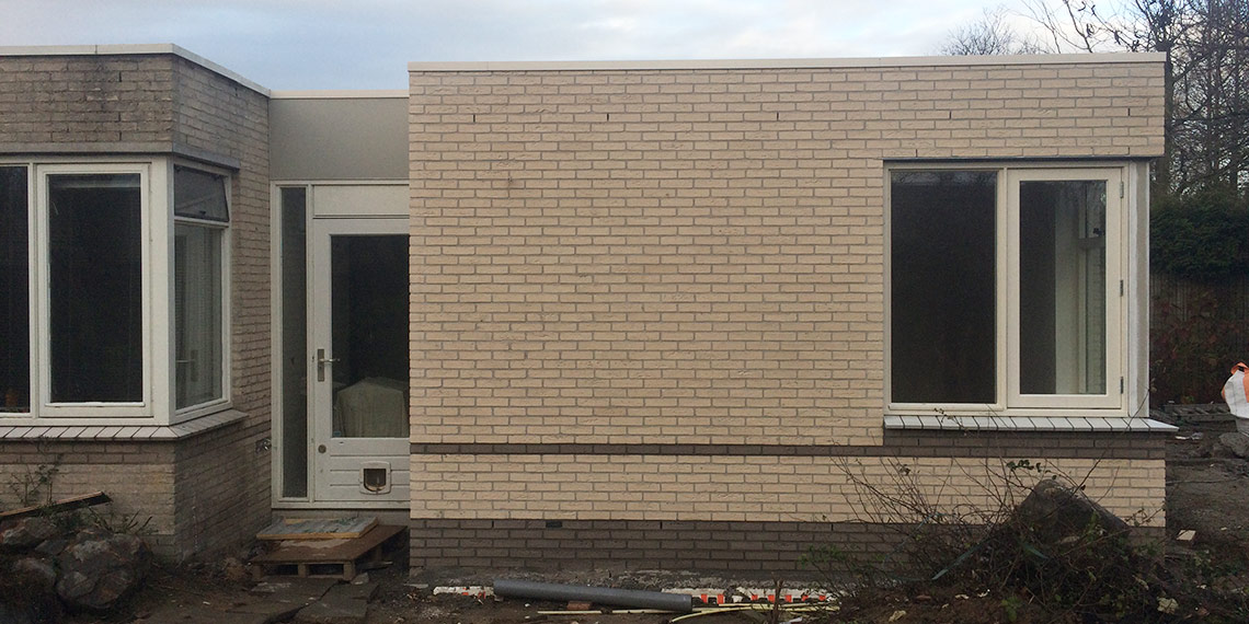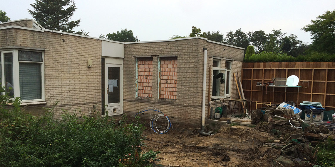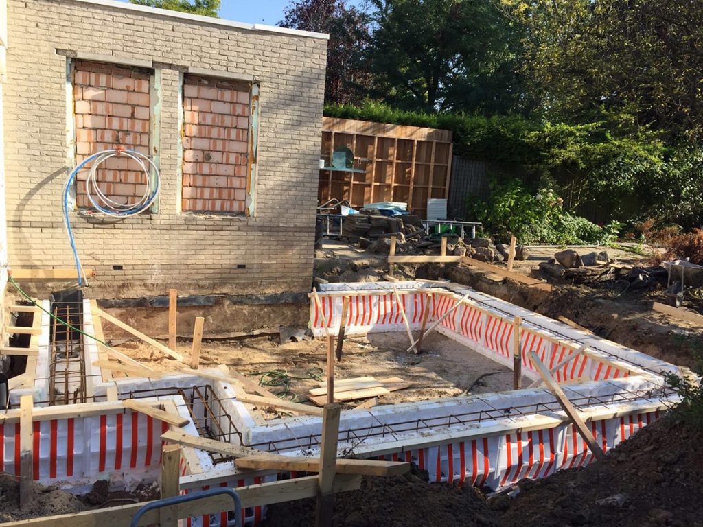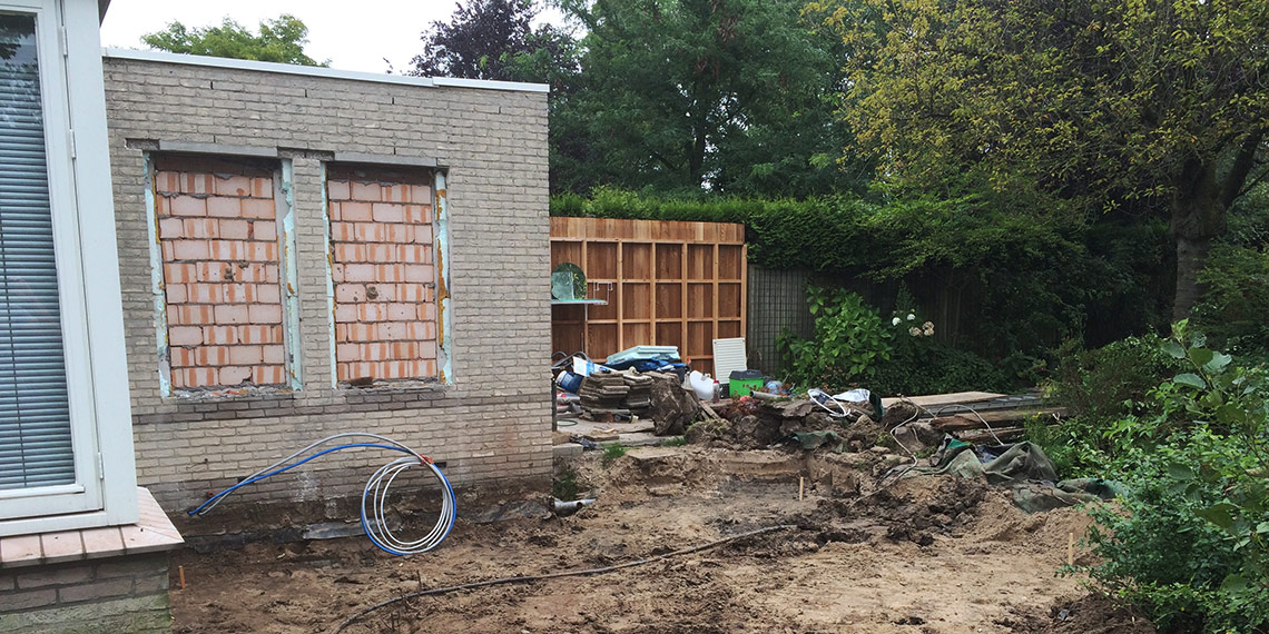 Een op het eerste oog redelijk eenvoudige aanbouw. ware het niet dat er voordat er gebouwd kon worden eerst een vijver moest worden verwijderd. Verder moesten er 13 meter lange heipalen de grond in om de aanbouw op de juiste wijze te kunnen funderen. Daarnaast was er de wens om een kruipruimte onder de aanbouw aan te brengen. Allen factoren die zeker niet onuitvoerbaar zijn, maar ze zorgden wel voor een complexere opdracht dan alleen ‘even’ een aanbouw volgens tekening realiseren.