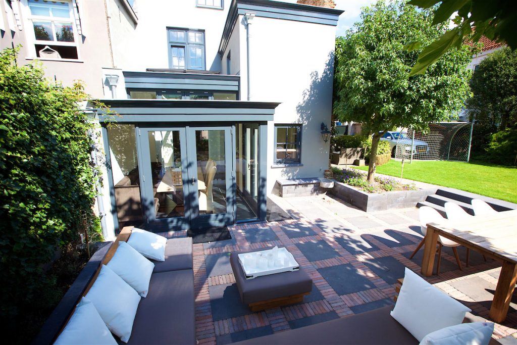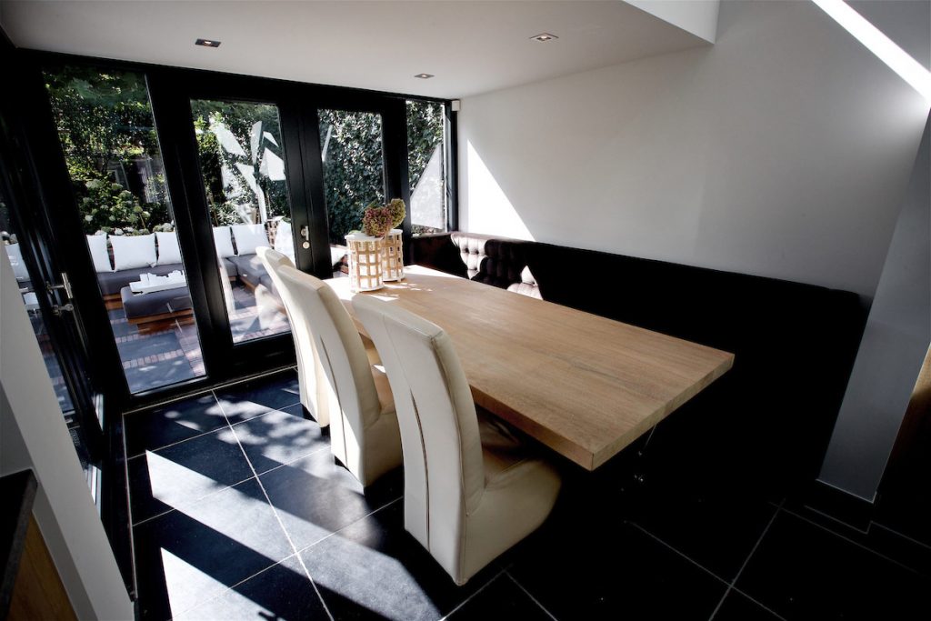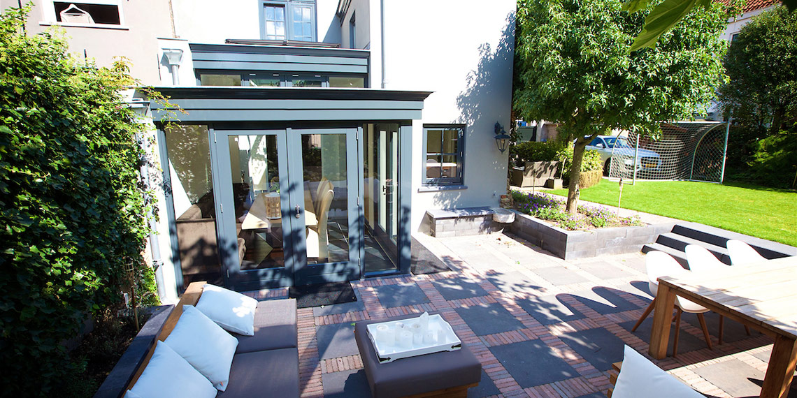 Stadswoning met ruimtelijke leefkeuken en tuinzicht
