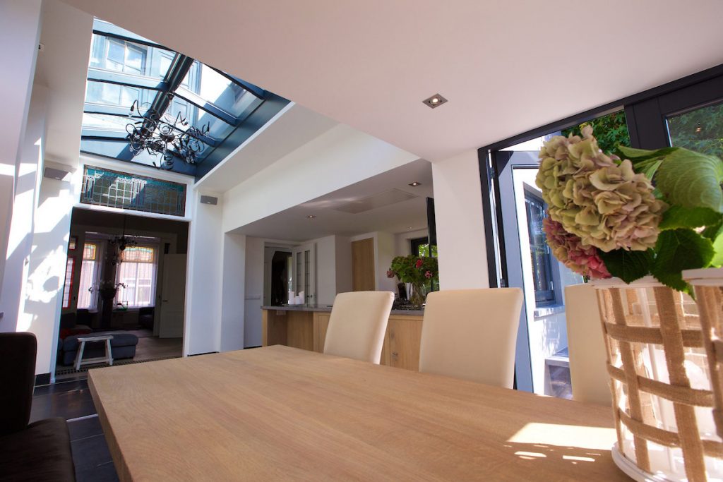 Soms heb je een project waarvan het resultaat zo in een woonmagazine kan worden geplaatst. De aanbouw van deze stadswoning in Zaltbommel is er zo eentje. Een forse verbouwing die enorm goed voorbereid is en dat moest ook wel. Belangrijk feit was namelijk dat de totale verbouwing in een tijdsbestek van maximaal 3 weken plaats moest vinden omdat de opdrachtgever wel gewoon zo ongestoord mogelijk moest kunnen blijven wonen in de ruimte. Strakke planning en dito voorbereiding van werkzaamheden is dan essentieel.