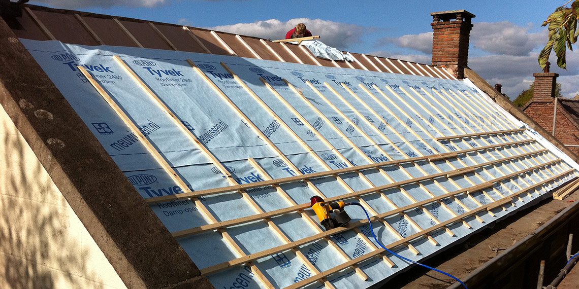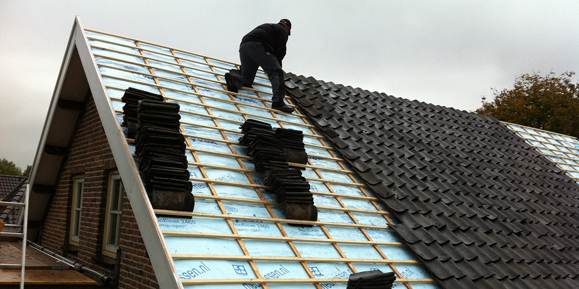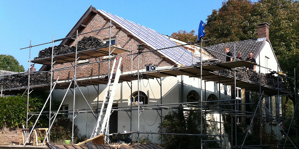 Een ogenschijnlijk eenvoudige opdracht die doordat het een pand betreft dat onder toezicht van Monumentenzorg staat, toch best gecompliceerd was. Los nog van alle wensen die er naast het isoleren van het dak waren. De isolatie van het bestaande dak moest van buitenaf gebeuren. dat houdt in: dak geheel eraf, nieuw opbouwen van de constructie, isolatie aanbrengen, dakregels weer aanbrengen en vervolgens de bestaande pannen er weer op.