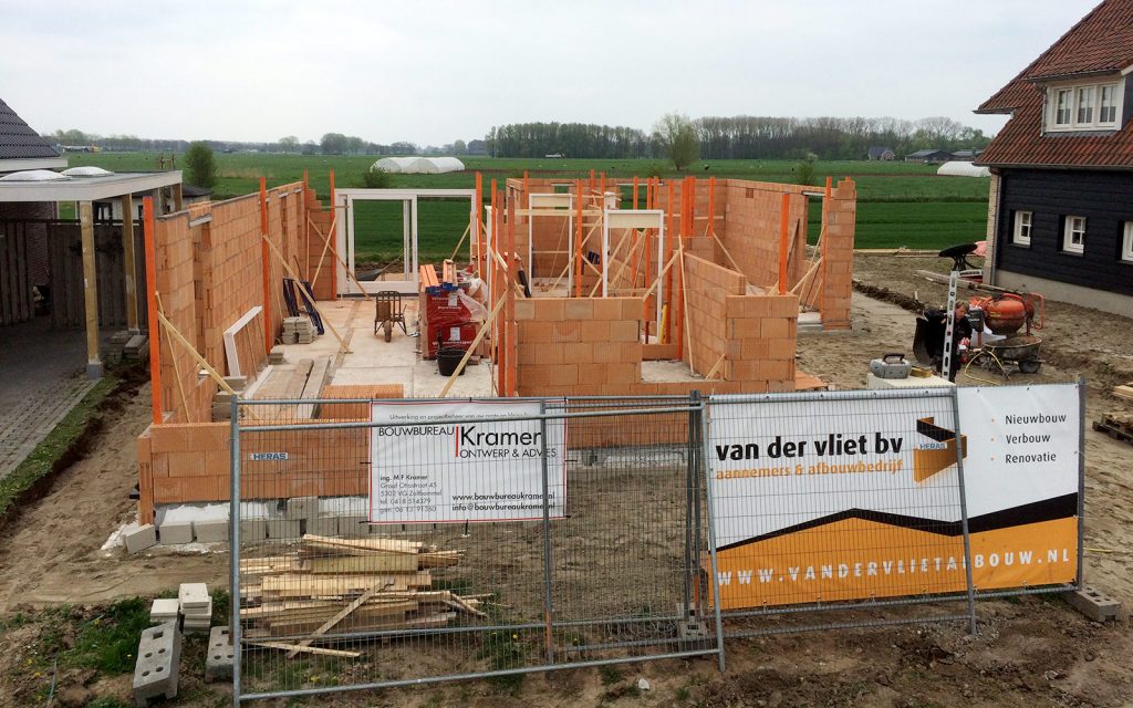In nauwe samenwerking met Bouwbureau Kramer realiseert Van der Vliet Aannemers- en Afbouwbedrijf deze ruime nieuwbouw woning in jaren-30 stijl in Aalst. Het heiwerk en de fundering zijn al gereed en in april zijn we gestart met het opbouwen van de binnenmuren. De bouw verloopt gestaag en binnenkort zal de eerste verdiepingsvloer al worden aangebracht. Voor de zomer echt begint zullen we deze nieuwbouw woning al opleveren. Het contact tussen opdrachtgever, architect en aannemer verloopt uiterst prettig en constructief. Prima samenwerking dus en dat zie je in het tussentijdse resultaat ook terug.