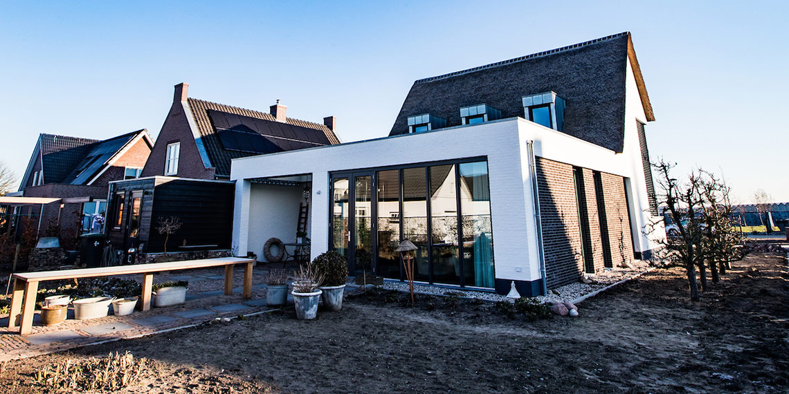 Een nieuwbouw woning met een opvallende kapconstructie en gebruik makend van een grote diversiteit aan materiaalsoorten. Dat heeft Bouwkundig adviesbureau Verwijst bij deze in het oog springende woning in nauwe samenwerking met Van der Vliet Aannemers van de tekentafel laten komen.