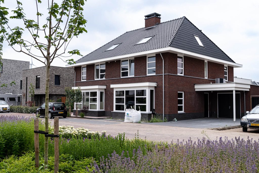 Kwaliteit in materiaaltoepassing en in afwerking, dat kan gezegd worden bij deze statige 2-onder-1-kapper. Doordat de architect heeft gekozen voor een horizontale 3-vlaksverdeling binnen de raampartijen, ontstaat een heel eigen karakter. De hoge daklijsten geven de 2-kapper bovendien een stoere uitstraling.